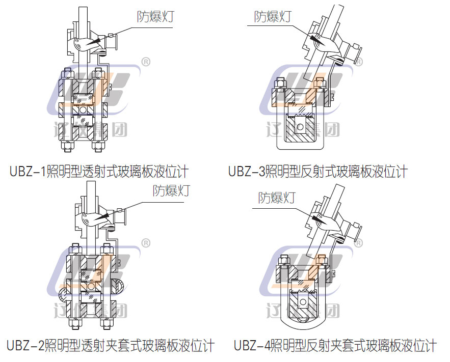 UBZ系列照明型玻璃板液位計(jì)是在UB-1、2、3、4及UBS-1、2、3、4基礎(chǔ)上,配有防爆照明設(shè)施的液位計(jì),它可以在室內(nèi)或夜間直接指示密封承壓容器和開口容器中介質(zhì)液位高度。