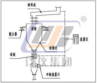 干燥的散裝固體物料自由落體沖擊到傳感檢測(cè)板(沖板)上后,傳感檢測(cè)板產(chǎn)生機(jī)械偏移。然后散裝物料流連續(xù)而無(wú)阻礙的通過(guò)。即:由于沖擊力與傳感檢測(cè)板具有一定角度,故該力分解成一個(gè)水平分力和一個(gè)垂直分力。垂直分力由變送器的機(jī)械結(jié)構(gòu)克服而不起作用,而水平分力有一個(gè)差動(dòng)傳感器(線性可調(diào)差動(dòng)變送器),這個(gè)信號(hào)經(jīng)與之相連的積算儀檢測(cè)和處理,得出瞬時(shí)流量和累積流量。