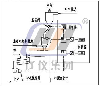 本儀表由(一次表)粉體沖量式流量變送器;(二次表)粉體沖量式流量?jī)x;穩(wěn)流裝置(一般情況下,由生產(chǎn)廠指導(dǎo)用戶設(shè)計(jì)、制造)三部分組成(需流量調(diào)解時(shí)應(yīng)配流量調(diào)節(jié)器),系統(tǒng)配套見(jiàn)下圖