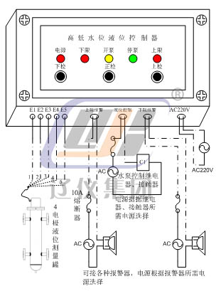 UDK-G3R-A1型水位控制器主要應用于工業(yè)蒸汽鍋爐、熱水鍋爐、污水處理、浴池及樓房給排水等。具有應用范圍廣、自控靈敏、抗干擾性強、體積小、價格低廉等特點。該控制器由水位檢測部分(電極、極筒)和水位控制部分組成,水位控制器是將導電介質的液位信號轉換為四組開關信號,上下限報警,LED顯示及開關輸出。