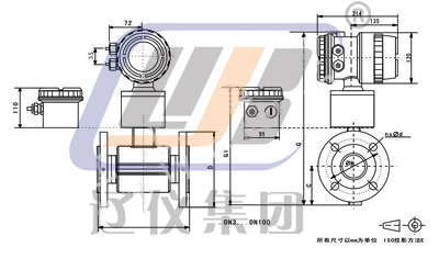 2)接地方式為接地電極(標準配置)時,DN125-1000口徑,尺寸L不變。